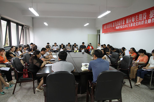 学院把征求意见、找准问题摆在重要位置,对“四风”问题进行再聚焦,力求查实找准。学院在7月上旬通过书面、网络、电话、设置意见箱及电子邮件等方式征求意见的基础上,开学初,利用教职工会议,向全院教职工原原本本通报了上次征集到的意见,并再次向全院教职工发放了意见征求表,征求全院教职工的意见。同时,8月30日,专门召开了学院学生代表座谈会,通过座谈交流面对面诚垦地向学生征求意见。