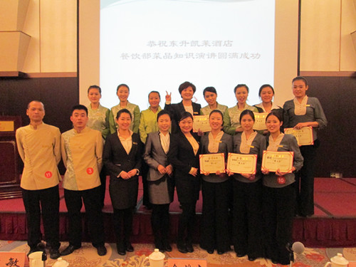 日前,从专业实习一线传来好消息:必赢官网在北京东升凯莱酒店餐饮部参加专业实习的同学们,能够珍惜实习机会,较好地发扬吃苦耐劳、团结协作的精神,发挥本科生知识功底好、专业基础扎实的优势,虚心向实习单位的老师们学习,在酒店举行的“东升凯莱酒店餐饮部菜品知识演讲”竞赛中表现出色,获得佳绩。为全面提升酒店服务品质,打造酒店特色餐饮文化,东升凯莱酒店餐饮部举办了该次竞赛活动。本次比赛共设三个奖项:一等奖一名,二等奖两名,三等奖三名。必赢官网2010级旅游管理与服务教育班王燕获得一等奖,2010级旅游管理与服务教育班杨蓉和陈国君获得二等奖。