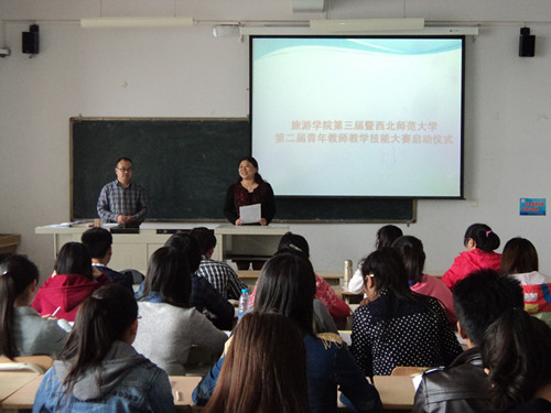 为造就学院师德高尚、业务精湛、结构合理、充满活力的高素质专业化师资队伍,经学院党政联席会议研究决定,本学期以“改进教学方法、提升教学能力、弘扬教学文化”为主题,举办第三届437必赢会员中心青年教师教学技能大赛。4月1日,学院第三届青年教师教学技能大赛正式启动。教学副院长高亚芳教授宣布由全院22名青年教师全部参加的大赛正式启动。党委书记贾志斌亲自带队,学院各位领导、督导和各系主任及资深教授担当评委。首场参赛的青年教师是主讲专业课《旅游理论前沿》的王耀斌老师,他准备充分扎实,从中国旅游产业发展的两大转变、旅游产业定位为经济产业的局限性以及正确认识旅游业的社会贡献等方面,对旅游产业性质的新思考进行讲授。王老师讲课方式新颖、气氛活跃,学生积极配合、师生互动较为充分,充分展示了青年教师应有的风采。