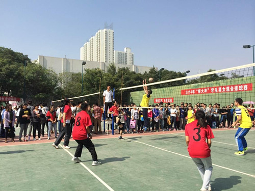 为增强学生身体素质,丰富学生课外生活,提高学生团队合作能力。2014年“师大杯”学生男女混合排球赛今日在西操场隆重开幕,校团委副书记慕小军、校团委宣传部部长杨庆、校学生会干部、各院参赛队伍以及500余名观众参加了开幕式。