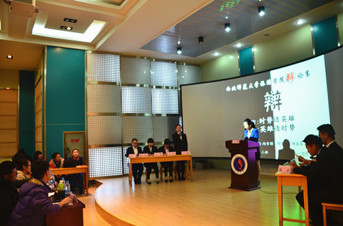 双方从精彩的开篇立论开始,现场就弥满着阵阵火药味,也预示着这将是一场精彩激烈、难分高下的比赛。在比赛当中,双方措辞准确,思维敏捷,抓住对方的漏洞巧妙反驳,正方同学慷慨激昂的结辩陈词赢得现场观众的阵阵掌声,反方同学逻辑清晰,气势高昂,也让在场每个人都感受到了辩论赛的风采所在。最后,评委们为本次辩论赛做了精彩的点评。在大家的期待中,主持人宣布了反方2014级空乘二班获得了决赛的胜利。
