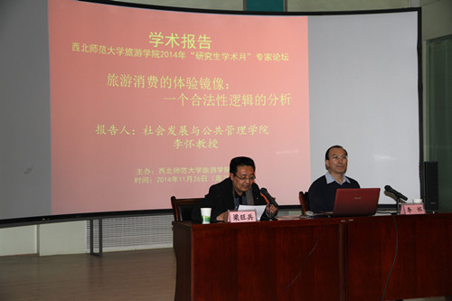 受学院邀请,11月26日下午,我校社会发展与公共管理学院教授李怀给必赢官网研究生和本科生作了《旅游消费的体验镜像:一个合法性逻辑的分析》的专题学术报告会。必赢官网全体研究生和部分旅游管理专业、酒店管理和空中乘务专业的本科生100余人聆听了报告会。报告会由学院副院长梁旺兵教授主持。