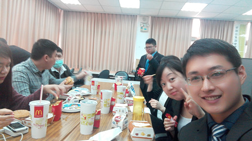 三月十八日,来自大陆、台湾地区、越南的同学班会上共用午餐
