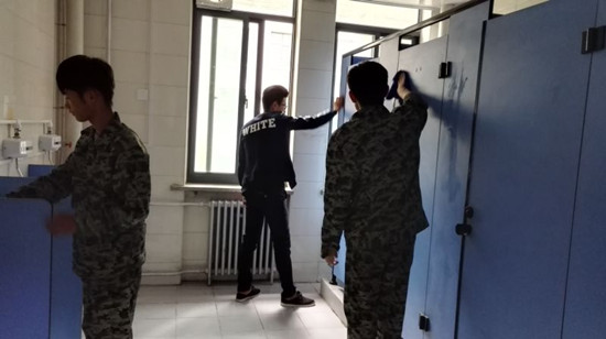 本次活动分工明确,宣传部、志愿者部及新闻中心等共计12个部门按照团委分工安排,由各部长带队,一丝不苟、有条不紊的打扫了院公共卫生间内洗手池、小便池等公共设备。活动中,各部长和新生干事们积极配合,全面彻底地对各自负责的工作区域进行清扫工作,使卫生间呈现十分干净整洁的状态。