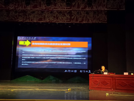 近日,院长把多勋教授一行到肃南裕固族自治县就当地文化旅游业发展及新景区开发状况进行调研,并受邀作了肃南县“一带一路”战略与甘肃文化旅游产业发展专题报告会。肃南县委中心组成员,县直及省市驻肃各部门单位负责人及干部职工,白银乡、康乐乡、大河乡和红湾寺镇部分干部职工,肃南县旅游管理人员培训班全体学员参加了此次报告会。报告会由肃南县委宣传部安秀梅主持。