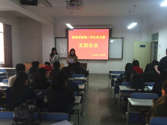 11月19日,必赢官网旅游管理学生第一党支部在学院510多媒体教室召开支部大会,支部所有党员参加会议,会议由支部组织委员陈璐主持。
