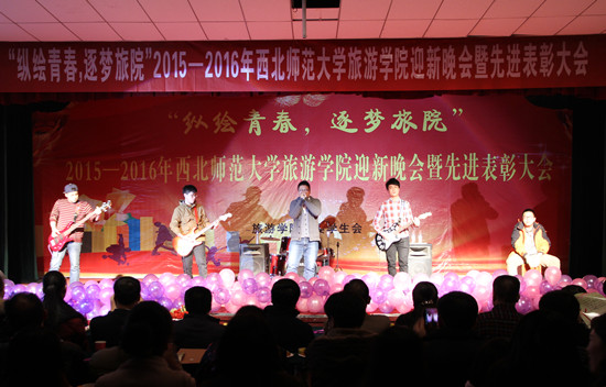 在学校大学生活动中心二楼,学院举办了2016年迎新晚会暨先进表彰大会,学院师生和兄弟学院学生代表400余人观看了晚会。