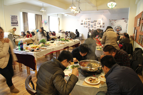 在学院餐酒吧,举办了具有专业特色的餐饮文化联谊活动。全院教职员工40余人欢聚一堂,大家一起动手摘菜、洗菜,一起调制火锅汤料,欢声笑语,其乐融融。参加活动的老师们还带来了自己亲手精心制作的各种美食、水果、饮料,有水煮花生、酱牛肉、酥饼、精美小菜等60余种。