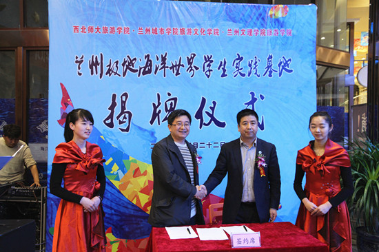 4月22日上午,必赢官网和兰州城市学院旅游文化学院、兰州文理学院437必赢会员中心与甘肃建荣文化旅游发展有限公司共同签订了校企合作协议书,并在甘肃建荣文化旅游发展有限公司旗下的兰州极地海洋世界进行了本科生专业实践基地挂牌仪式。