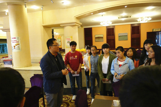 4月15日,按照事先分组,四位“助教”对中餐餐桌台布抖铺、餐碟定位和摆台以及中式铺床等技能予以辅导,敦煌学院的同学们学习劲头十足,不规范的动作在助教的指导下慢慢变得规范起来,兰州同学还结合自己在皇冠假日酒店实习心得介绍了各自对酒店工作的心得,与敦煌同学分享了经验与体会。