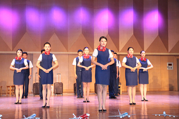 2015级空乘四班以现实飞行为背景的原创节目《生死时速》让观众了解到她们在飞行中处理突发情况的果敢,才艺表演《康定情歌》又展现了未来空姐们柔情的一面。