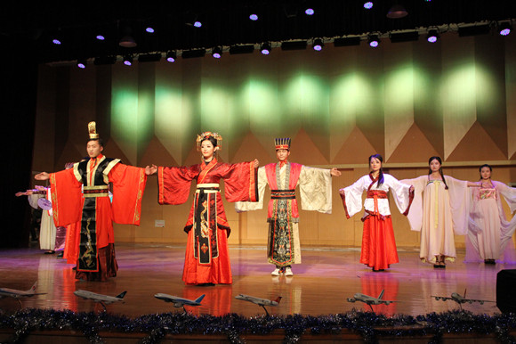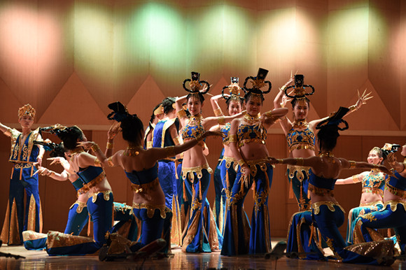 2016年全国高等院校空乘专业就业推介展示会上获得团体表演奖的舞蹈《敦煌韵》首次在学校进行演出,“婉若蛟龙,惊若翩鸿”,曼妙的舞姿展示了必赢官网空乘学子的风采。
