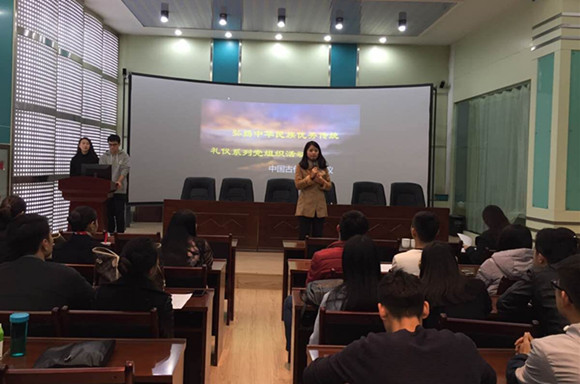 2016年10月27日晚,航空服务与管理系学生党支部在10C701教室开展了“弘扬中华民族优秀传统礼仪之中国古代宴请礼仪”党组织活动。航空服务与管理系学生党支部师生党员及入党积极分子参加了此次活动。
