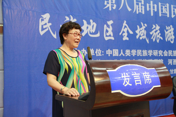 云南大学工商与旅游管理学院院长吕婉青教授代表第九届中国民族旅游论坛承办方表态发言