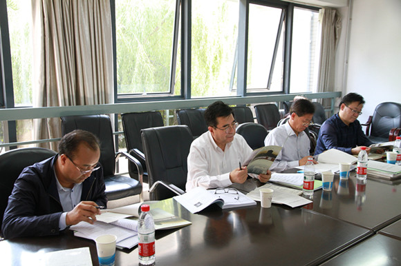 陈书记一行现场检查学院教学实训和办公用房后召开了座谈会。陈书记在查看了学院《十三五发展规划》、《学院大事记》、《学院基本概况》等资料后听取了汇报。把多勋院长就学院基本概况、科学研究、学科建设、师资队伍建设、组织架构、社会服务、同行业排名和学院发展制约因素等方面进行了详细汇报。