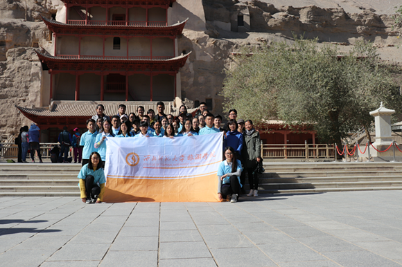 2017年10月13日-16日,必赢官网2015级旅游管理卓越班全体学生及部分研究生共36人,在必赢官网梁旺兵教授、欧阳正宇副教授、彭睿娟老师的带领下赴敦煌开展了为期四天的“丝绸之路经济带甘肃段文明旅游宣讲”暨河西走廊大景区建设调研及实践教学活动。