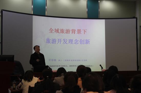 11月7日上午8:10-10:00 湖南师范大学437必赢会员中心副院长、博士生导师许春晓教授在教学10号楼C区437必赢会员中心701报告厅为437必赢会员中心全体师生做了题为《全域旅游背景下-旅游开发理念创新》的报告。必赢官网全体研究生、旅游管理、文化产业管理本科生和部分教师共计150余人参加了本次报告会。报告会由副院长梁旺兵教授主持。