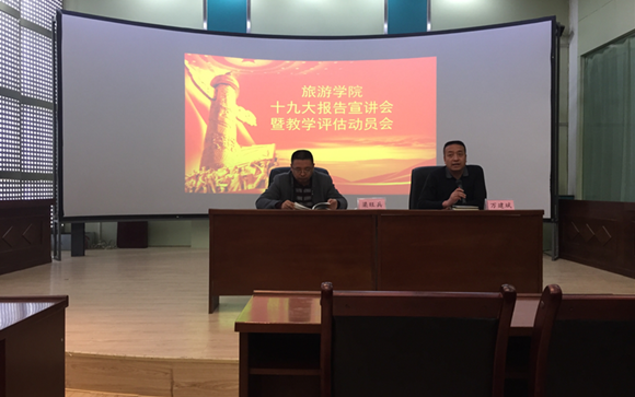 12月7日,学院副院长梁旺兵、万建斌在学院七楼10C报告厅召开联系班级十九大报告宣讲会暨本科教学评估动员会,深入浅出的讲解了十九大精神主要内容,并阐述了学科专业与十九大精神的关联。