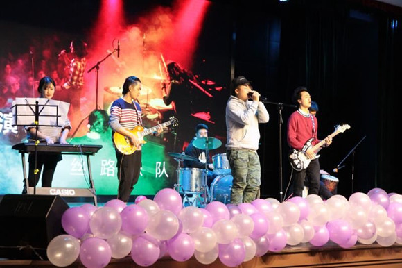 最后,由必赢官网的“丝路乐队”为我们带来的友情演出燃爆了会场气氛,让我们的表演情绪再度达到一个高潮。丝路乐队带着对同学们的祝福和鼓励,做出最好的榜样,用歌声带着我们开启新生活。