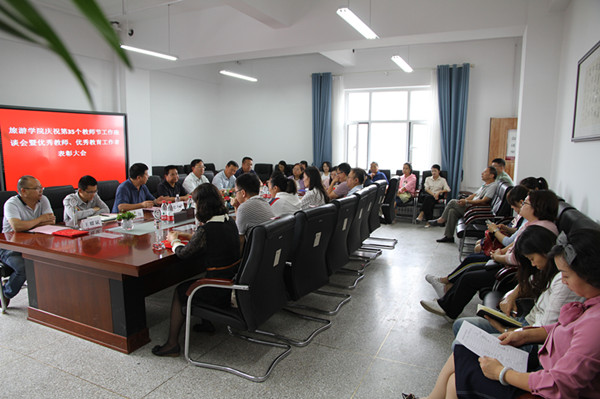 会上,党委书记李发舜宣读学院表彰优秀教师、优秀教育工作者文件,姚志宏书记为优秀教师颁奖,院长把多勋教授为优秀教育工作者颁奖。院长把多勋教授为教师代表发放教师工作室钥匙及相关办公物品;院党委书记李发舜为退休教师颁发纪念奖杯、纪念品。学院学生代表和老师齐唱《校园的早晨》,表达节日的祝福和对老师的感谢!