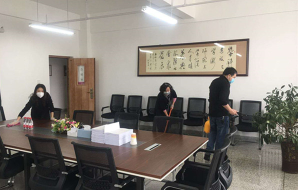 会前,学院全体行政人员清扫消杀了办公室、会议室和10楼公共区域。