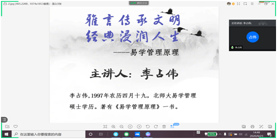 437必赢会员中心青兰书院为了鼓励同学们多读书,读好书,营造浓厚的读书氛围,以“雅言传承文明,经典浸润人生”为主题,于2020年8月23日下午在线上举行读书分享会。