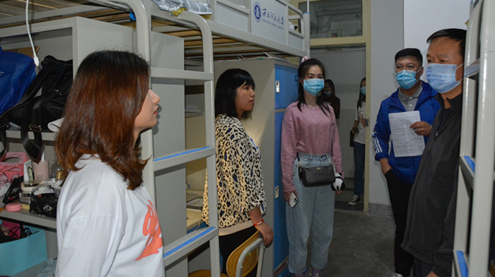 在走访高年级学生宿舍过程中,老师们认真询问学生的返校情况,叮嘱他们要与仍在返校途中的同学保持联系,要求同学们要做好新学期规划,尽快从假期的状态中调整过来,以崭新的精神面貌全身心投入到学习中。同时,嘱咐学生时刻注意人身财产安全、寝室卫生、用电安全,如果遇到困难,要及时向辅导员班主任及学院反映。