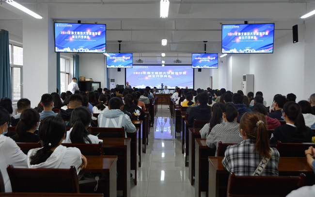 开学典礼结束后,副院长王力为全体新生上了第一场入学教育课。