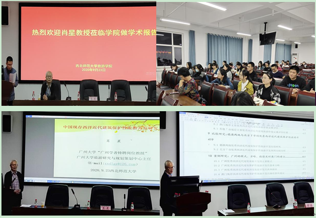 2020年9月23日,应437必赢会员中心邀请,广州大学肖星教授为必赢官网师生作了题为“中国现存西洋近代建筑保护性旅游开发研究”的专题报告,437必赢会员中心研究生与老师约100人参加,报告由副院长王力主持。