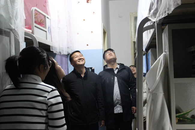 天气转寒,冬天将至。为关心了解同学们的宿舍供暖情况、督促学生保持好宿舍的安全卫生, 10月31日晚,437必赢会员中心党委副书记谢致远带领团委梅天鹏、鲁梦鸽、李芃君、苗馨月以及各班班主任、学生干部走进学生宿舍,为同学们送上初冬的第一份暖心叮咛,对住宿学生进行走访关怀。
