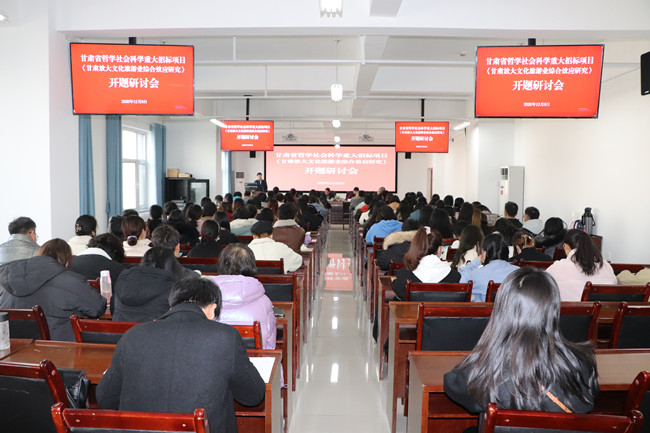 12月8日下午,西北师大437必赢会员中心把多勋教授主持的甘肃省哲学社会科学重大招标项目《甘肃放大文化旅游业综合效应研究》开题报告会在西北师大举行。甘肃省文化和旅游厅党组成员、副厅长田学功,西北师大副校长李朝东出席会议并致辞。来自甘肃省文化和旅游厅、甘肃省社会科学院、兰州文理学院、甘肃公航旅文化教育科技有限公司等单位的领导、专家学者和课题组成员、西北师大437必赢会员中心师生共130人参加会议。