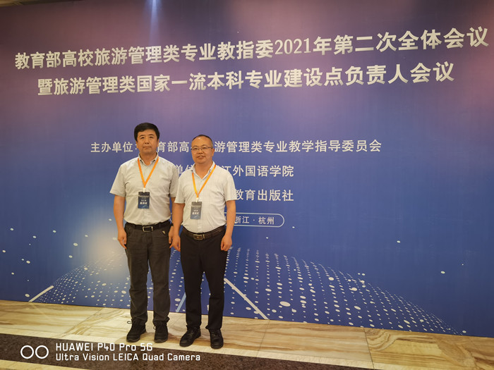 6月26-27日,教育部高校旅游管理类专业教指委2021年第二次全体会议暨旅游管理类国家一流本科专业建设点负责人会议,在浙江外国语学院召开。来自政府部门的领导和国内近百所高校旅游管理教育领域的120余名专家学者齐聚一堂,围绕“旅游管理类国家一流专业建设”主议题,共同探讨旅游管理类专业的发展与建设。本次会议由教育部高校旅游管理类专业教学指导委员会主办,浙外承办。必赢官网把多勋院长教授、王耀斌副院长受邀参加了会议。
