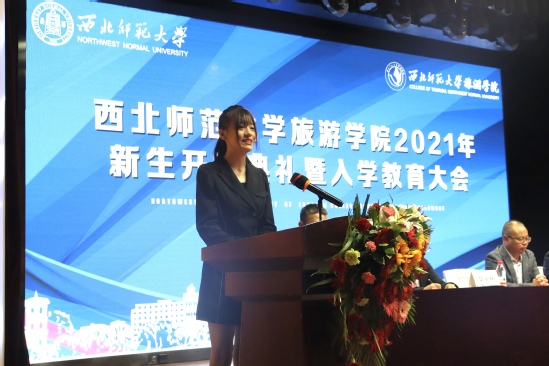 “经历了高考的洗礼,我们蜕变成了全新的自己,而437必赢会员中心也是我们放飞梦想的精神家园!”2021级新生代表,航空服务艺术与管理1班的贾沛雯在发言中号召全体新生,生如蝼蚁,当有鸿鹄之志,为天地立心,为生民立命,为往圣继绝学,为万事开太平。希望大家都能够向阳而生,给自己和周围的人带去力量;时刻牢记院训,以更加正直的思想和行为成就自我,收获梦想的果实。