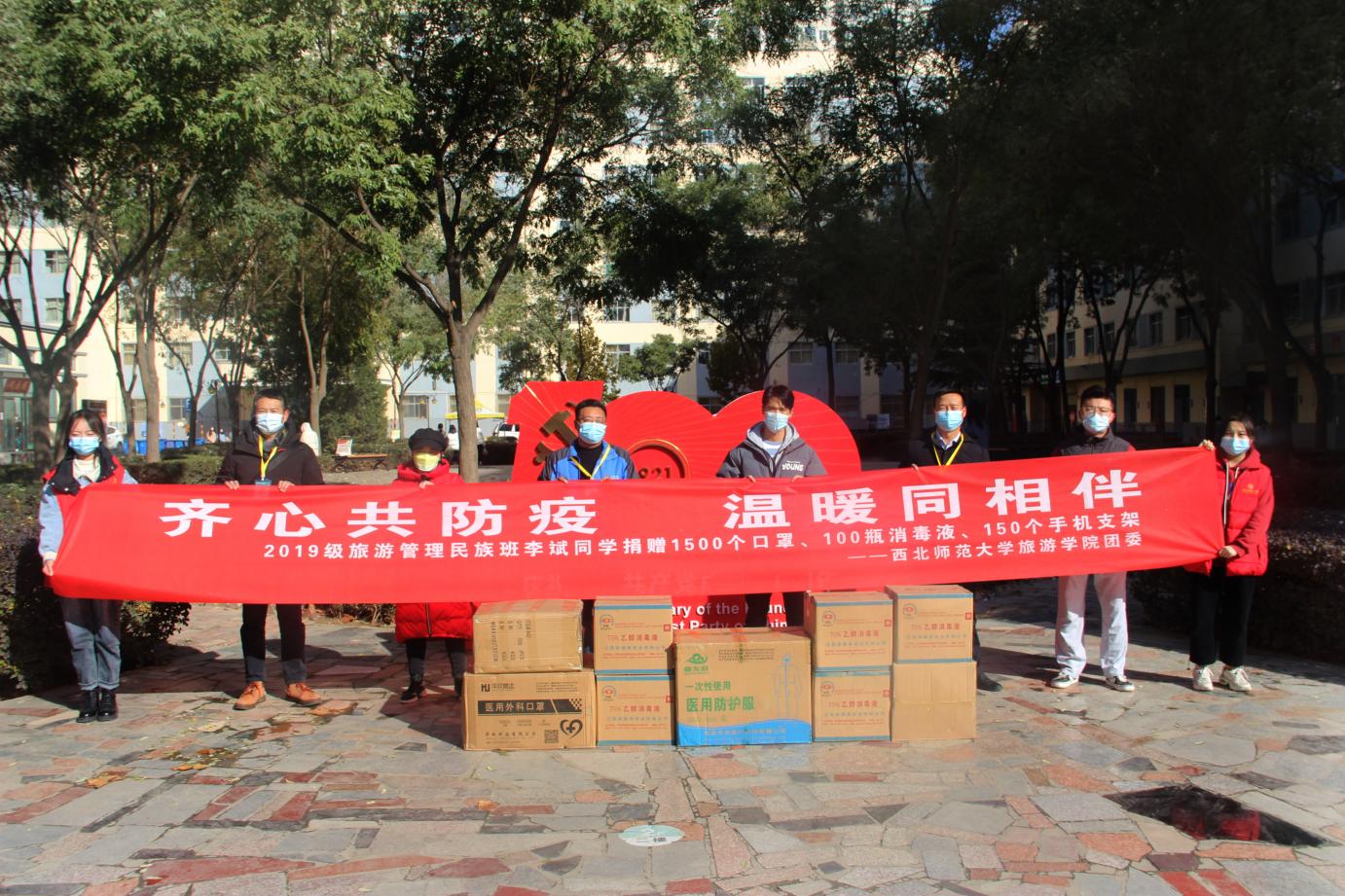 同心抗“疫”,众志成城。疫情防控是一场没有硝烟的战斗,战“疫”的每分每秒都始终牵动着参与其中的每一位同学们的心。在抗击新冠肺炎疫情的关键时期,必赢官网2019级旅游管理民族班学生李斌伸出援助之手无偿捐赠防疫物资1500个口罩、100瓶消毒液、150个手机支架。以实际行动助力学院抗击疫情,贡献青春正能量,也为学院疫情防控提供了有力的物资保障。