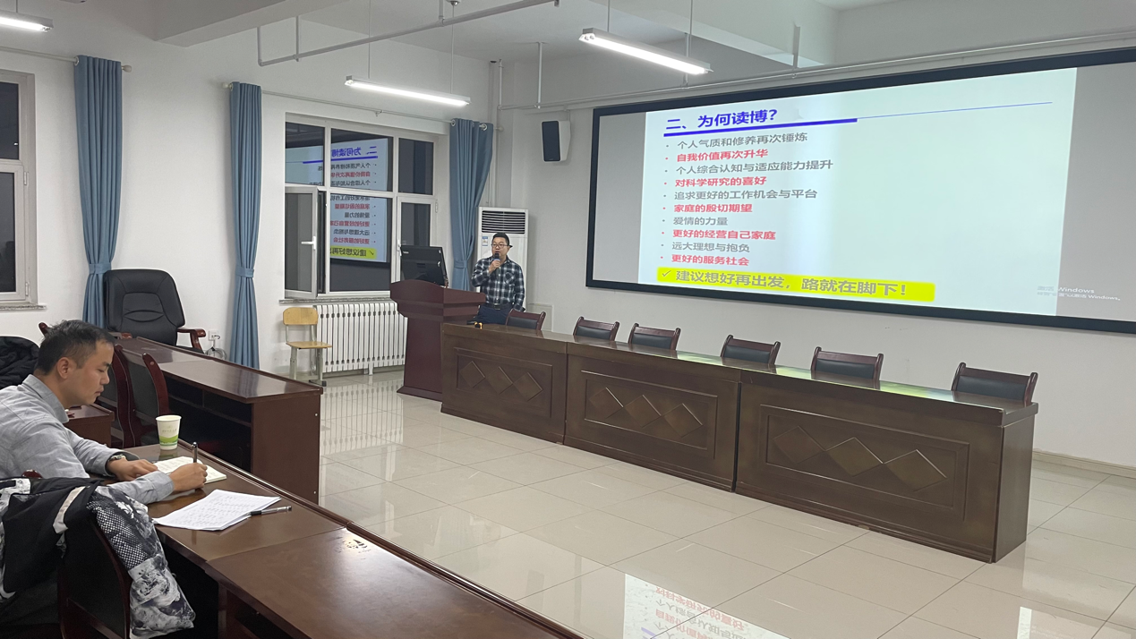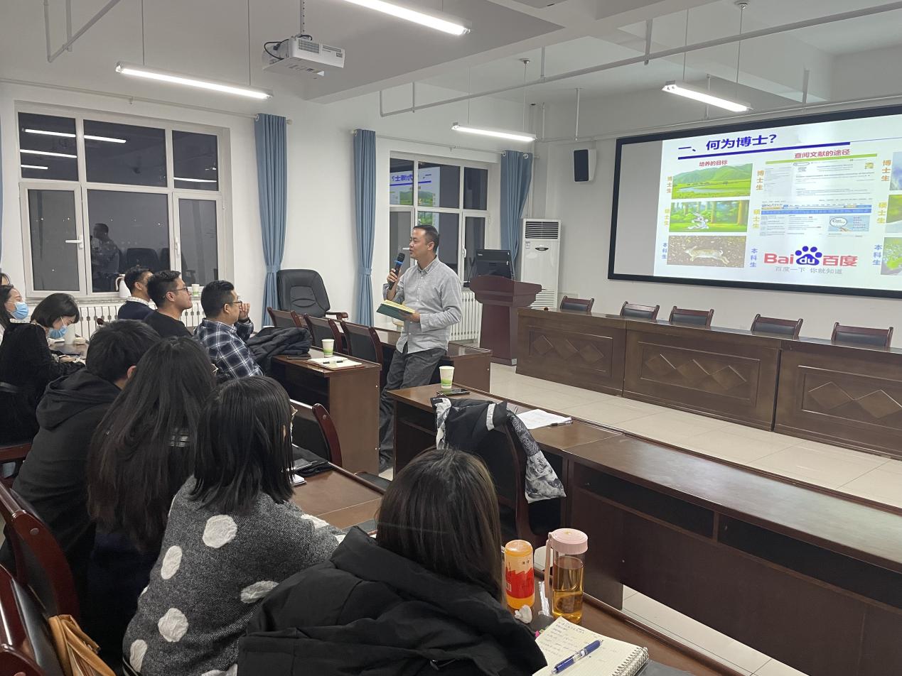 包军军老师以轻松诙谐的语言向同学们分享了自己读博心得及经验,鼓励同学们考博,加强了同学们读博的信心,最后强调了研究生期间英语的重要性,呼吁同学们学好英语。