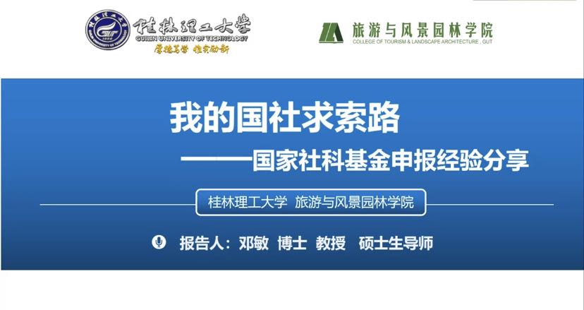 2021年12月1日晚上,应学院邀请,桂林理工大学旅游与风景园林学院邓敏教授为必赢官网师生作了题为“我的国社求索路—国家社科基金申报经验分享”的专题报告,报告会由副院长柴亚林老师主持。