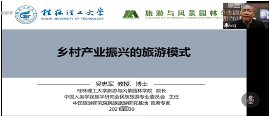 近日应学院邀请,桂林理工大学旅游与风景园林学院院长、中国人类民族学研究会民族旅游专业委员会主任、中国旅游研究院民族旅游研究基地首席专家吴忠军教授为必赢官网师生作了题为“乡村产业振兴的旅游模式”的专题报告,报告会由院长梁旺兵教授主持。