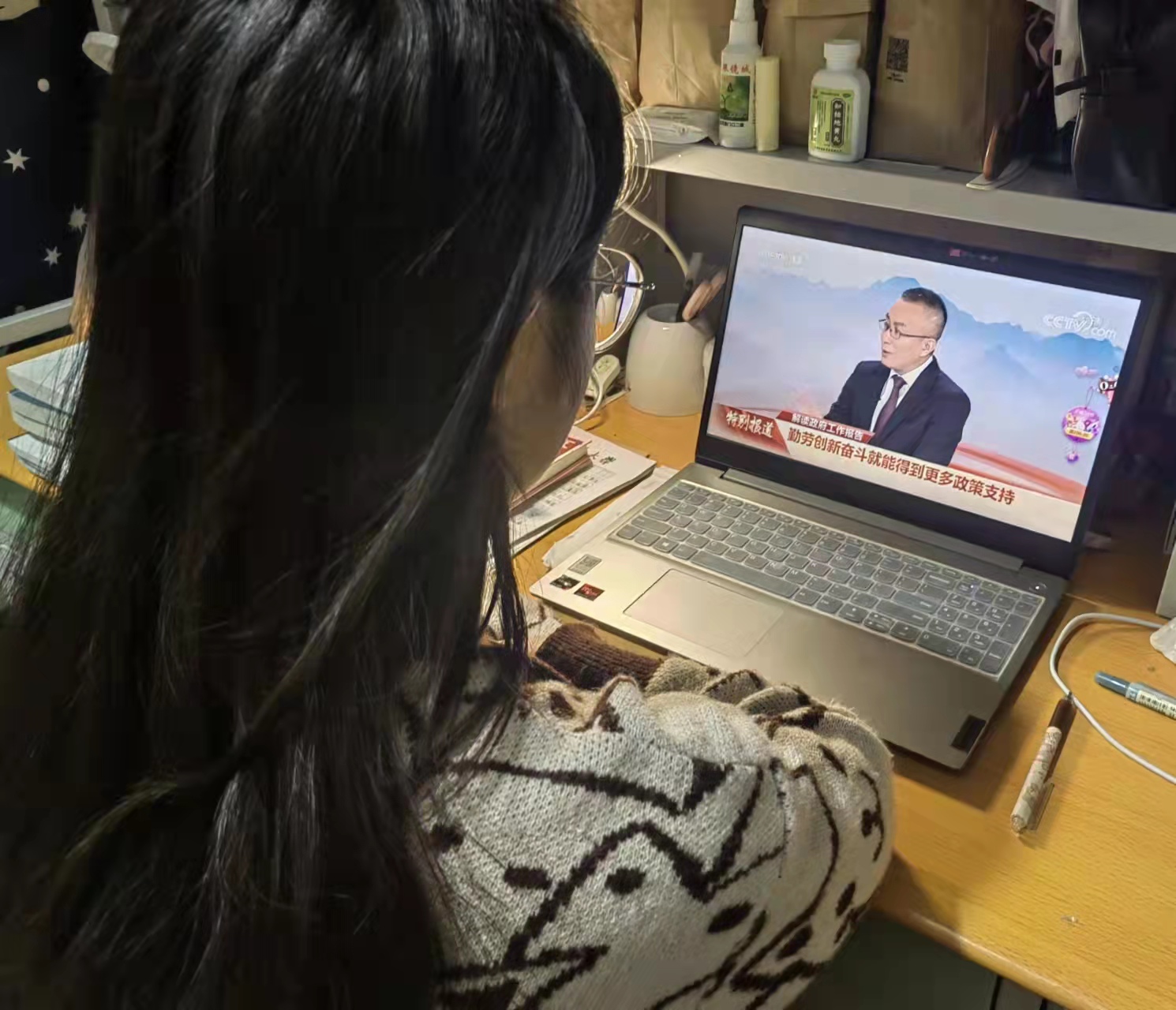 “通过观看十三届全国人大五次会议,我明显的感觉到我们的国家已经繁荣富强,并且不断的走向实现中华民族伟大复兴梦的新征程。我们也将继续前进,努力为国家建设贡献出自己的一份力。”