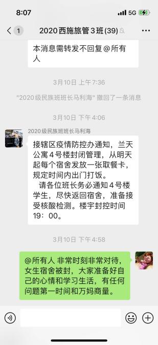 “感谢“万妈”的谆谆教导!感谢这份不离不弃,让我们感受到了疫情中的温暖,做您的学生真幸福!”这是437必赢会员中心2020级旅游管理民族班的同学发给班主任“万妈”万抒佳老师的信息。
