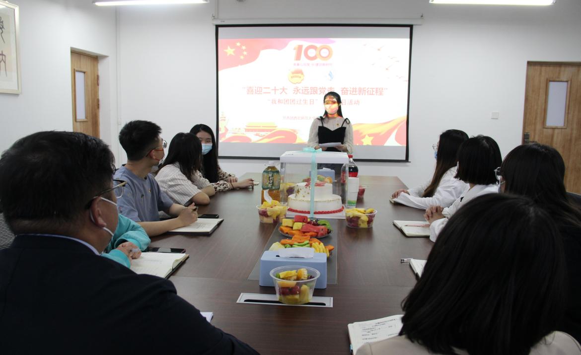 2022年,是党的二十大召开之年,又恰逢建团100周年,在“五四”青年节即将到来之际,为引导广大青年团员深入学习百年团史,厚植爱国爱党情怀,增强使命感与责任感,以实际行动迎接党的二十大胜利召开。4月28日,437必赢会员中心团委开展了“喜迎二十大,永远跟党走,奋进新征程——我和团团过生日”主题团日活动,学院团委书记梅天鹏为参会团员讲授《永远跟党走——党领导下中国青年运动的百年历程》专题团课,为大家讲述了党领导下中国青年运动的百年(1922-2022)光辉历程、关于青年工作的重要思想引领新时代中国青年运动书写崭新篇章、百年中国青年运动历程的启示等内容。学院专职辅导员鲁梦鸽、苗馨月、基层团支部书记、2022年新发展团员参加活动。