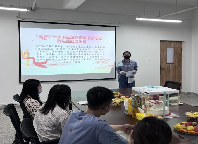 随后,团委书记梅老师以《永远跟党走——党领导下中国青年运动的百年历程》为主题,从党领导下中国青年运动的百年(1922-2022)光辉历程、关于青年工作的重要思想引领新时代中国青年运动书写崭新篇章、百年中国青年运动历程的启示等内容,带领大家回顾共青团发展历史,了解共青团历史上的“发展密码”和“工作密码”,解读新时代青年工作和共青团工作的特点,寄语团员青年不忘初心,继续前进。