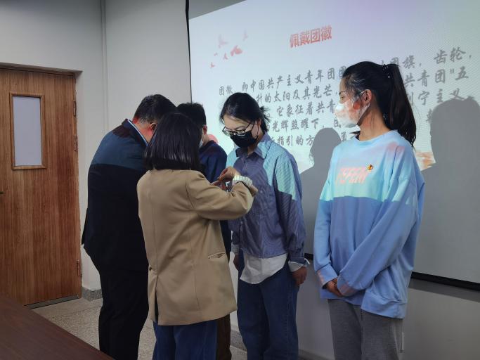主题团日活动为2022年新发展团员举行入团仪式,三位新发展团员面对着庄严,鲜艳的团旗进行庄重的宣誓,“我志愿加入中国共产主义青年团,坚决拥护中国共产党的领导,遵守团的章程……”并由团委老师为三位新发展团员佩戴团徽。在2022年这具有非凡意义的一年里成为团员,三位新发展团员也颇有感想,索南道吉同学说:“在疫情防控期间,我有幸加入党校公寓临时团支部,配合老师们做好疫情防控志愿服务工作。当真正面对这份责任和义务的时候,我明白只有坚决拥护共产党的领导,遵守团的章程,执行团的决议,履行团员义务,严守团的纪律,才能更好的为人民服务。今天,我将光荣的佩戴起这枚金色的团徽。我更加明白了要成为一名合格的团员,就要时刻牢记自己的身份,不断增强自身的光荣感和责任感。”