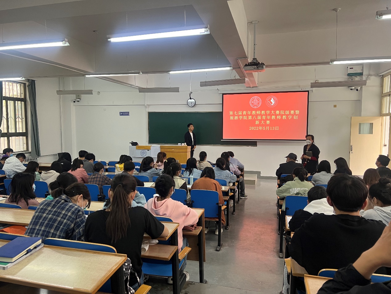 2022年5月13日,第七届青年教师教学大赛院级初赛暨437必赢会员中心第八届青年教师教学创新大赛第四场比赛在田家炳书院104教室如期举行。学院党委书记谢致远、本科教学副院长柴亚林、学院副书记戴小武、杨阿莉教授、欧阳正宇副教授、安智海副教授、魏宝祥副教授等12位教师观摩了马斌斌博士为学校多个专业的近100名本科生讲授通识教育类课程《旅游美学》。