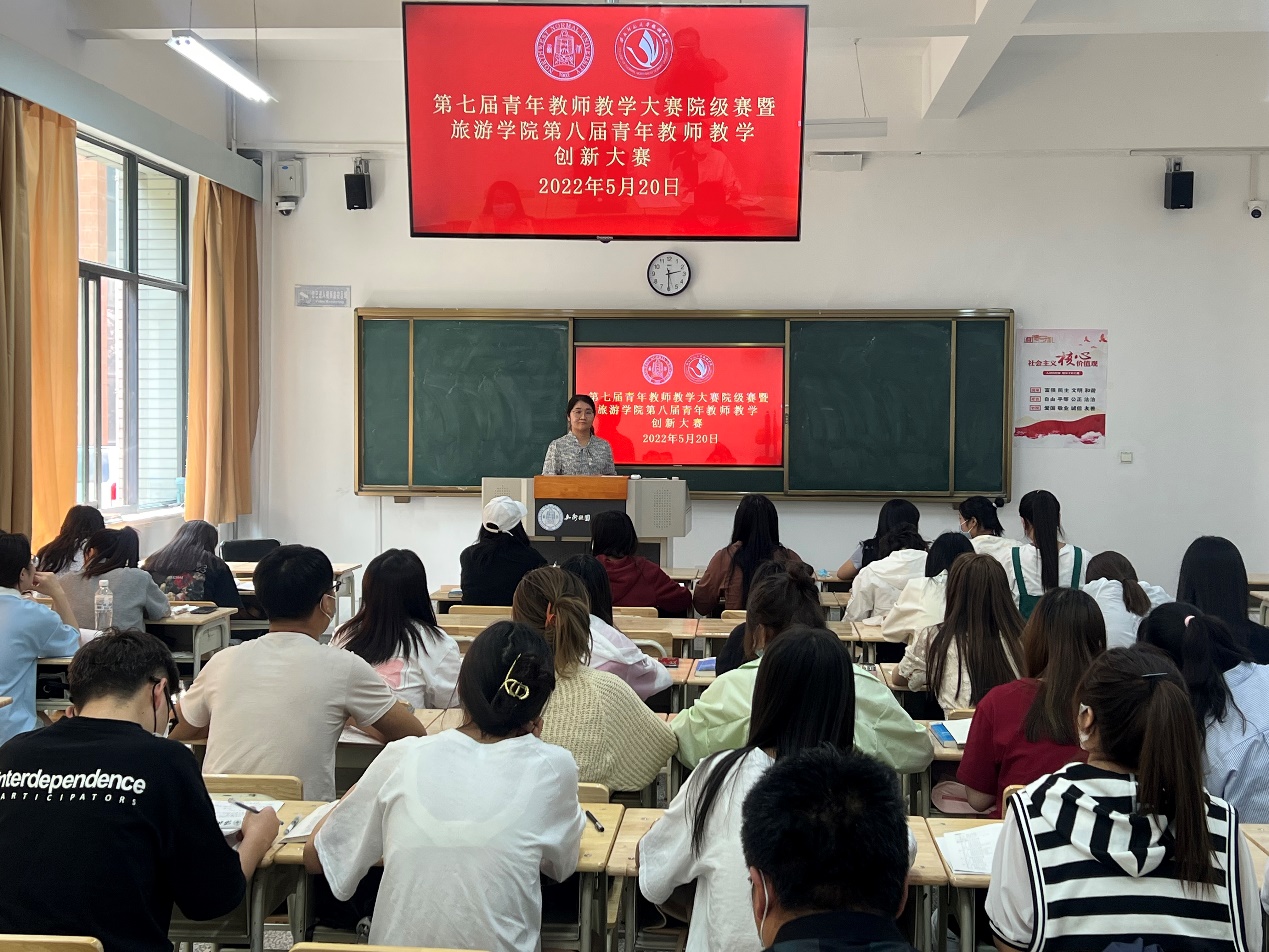 2022年5月20日下午,第七届青年教师教学大赛院级初赛暨437必赢会员中心第八届青年教师教学创新大赛的第八场比赛在10号楼A区114教室如期举行。学院党委书记谢致远、本科教学副院长柴亚林、杨阿莉教授、欧阳正宇副教授、谢民老师、王艳林老师以及侃卓措博士等7位教师观摩了周婧老师为2020级旅游管理专业本科生讲授的《旅游经济学》课程。