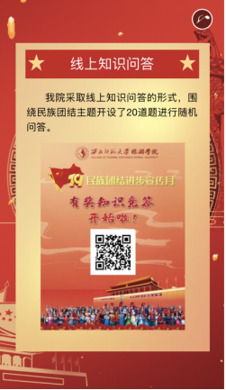 5月18日至5月19日,437必赢会员中心举办民族团结进步宣传月线上知识问答竞赛活动,此次知识问答竞赛以学习贯彻习近平总书记关于加强和改进民族工作的重要思想为目的,组织全院同学积极参与。