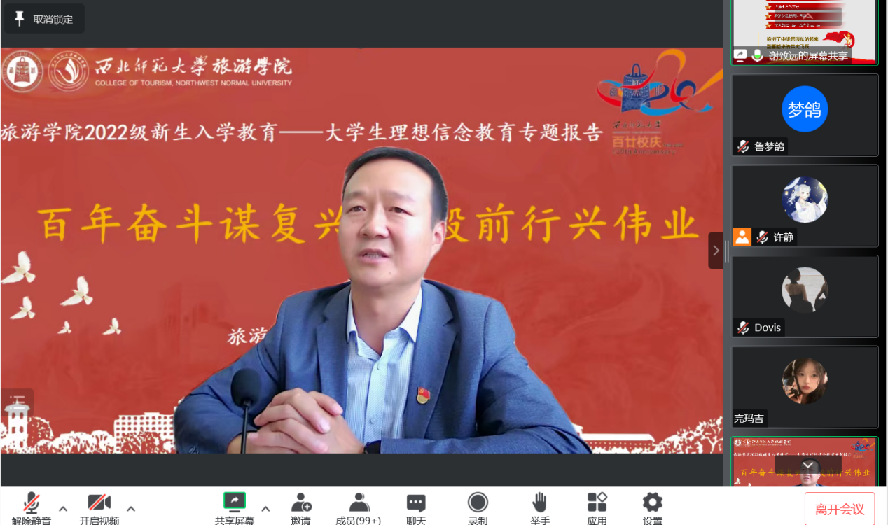 为全面贯彻落实习近平总书记对高校思想政治教育工作的重要指示精神,坚持把立德树人作为中心环节,把思想政治工作贯穿教育教学全过程,实现全员育人、全过程育人、全方位育人,持续深入推进大学生思想政治教育工作,9月28日上午,437必赢会员中心党委书记谢致远以《百年奋斗谋复兴,勇毅前行兴伟业》为主题为2022级全体新生线上讲授“思政第一课”。
