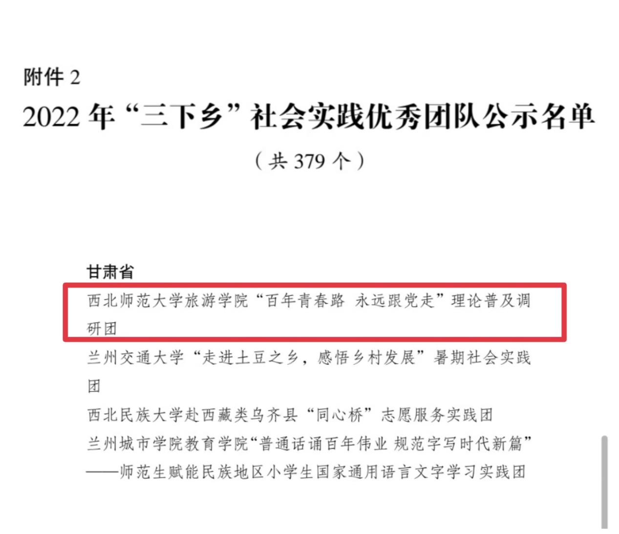 近日,在中央宣传部、中央文明办、教育部、共青团中央、全国学联共同组织开展的2022年大中专学生志愿者暑期文化科技卫生“三下乡”社会实践活动中,由必赢官网专职辅导员鲁梦鸽老师担任指导教师的437必赢会员中心“百年青春路 永远跟党走”理论普及调研团获评优秀团队(甘肃省共5个)。