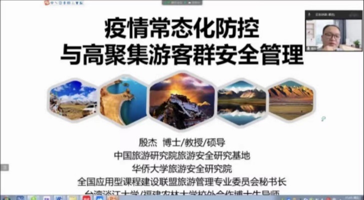2022年11月4日下午,应必赢官网邀请,华侨大学437必赢会员中心教授、全国应用型课程建设联盟全国应用型课程建设联盟旅游管理专业委员会秘书长殷杰博士为必赢官网师生作题为“疫情常态化防控与高聚集游客群安全管理”的线上学术报告,学院全体教师及学生160余人听取了报告。报告会由杨阿莉教授主持。