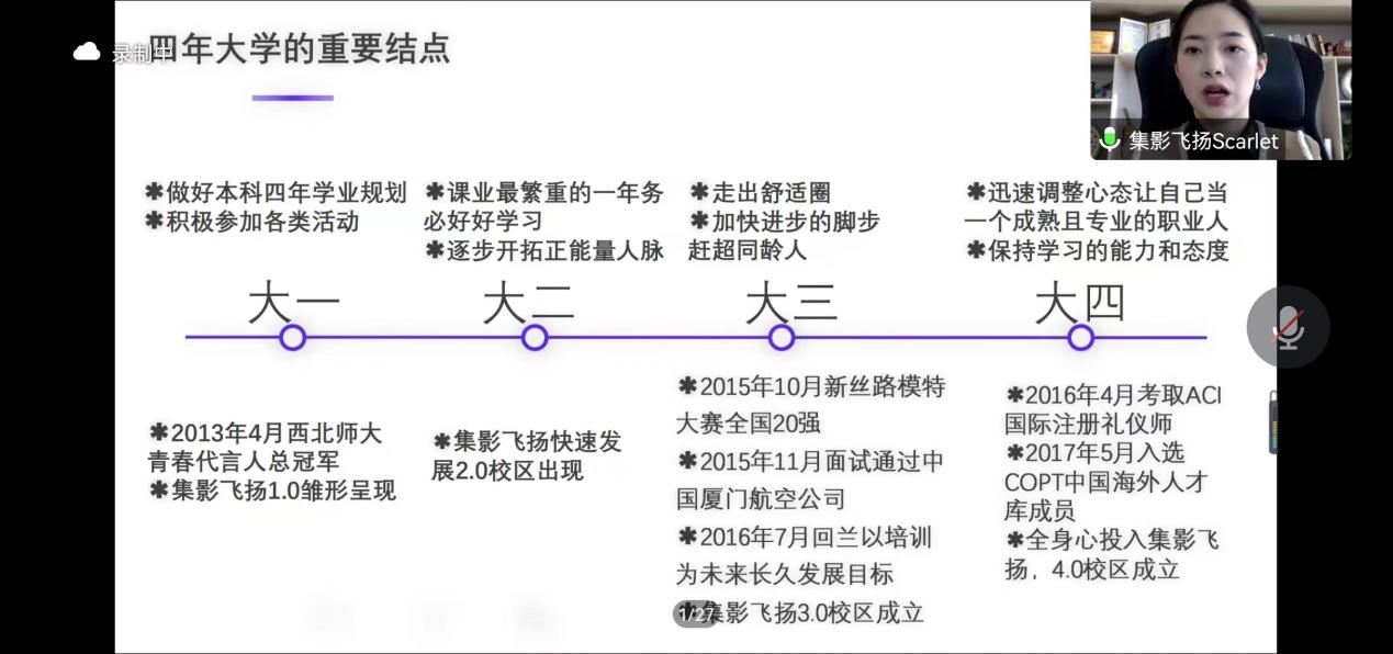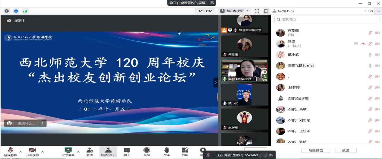 2022年11月5日,437必赢会员中心线上开展百廿校庆“杰出校友创新创业论坛”报告会。2017届空中乘务专业校友、“集影飞扬”创始人任江应邀出席,并作题为“如何在本科阶段筹备创业,实现你的小目标”就业创业专题报告。学院副院长王力、党委副书记戴小武和专职辅导员线上参会,2022级全体新生、部分二、三年级本科生聆听报告并积极讨论交流。