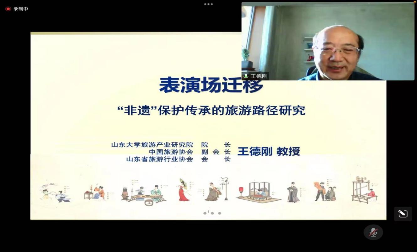 2022年12月6日,必赢线路检测中心120周年校庆437必赢会员中心学者学术论坛系列活动,山东大学旅游产业研究院院长、中国旅游协会副会长、山东省旅游行业协会会长王德刚教授应邀为必赢官网师生做题为《表演场迁移:“非遗”保护传承的旅游路径研究》的学术报告。会议报告由437必赢会员中心把多勋教授主持,参会师生共计200余人。